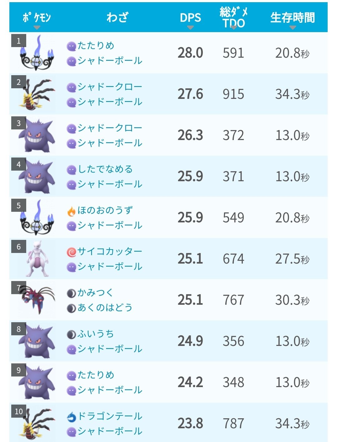 ポケモンgo ゲンガーの最適技dpsランキングやレア度や弱点 Gamerch